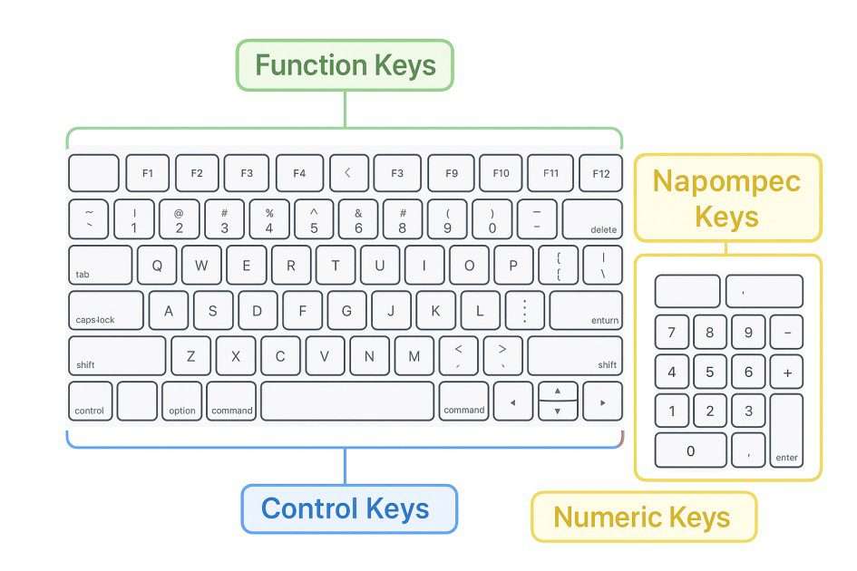 Function keys (F1–F12): Serve as shortcuts to specific commands or services in both software and operating systems.